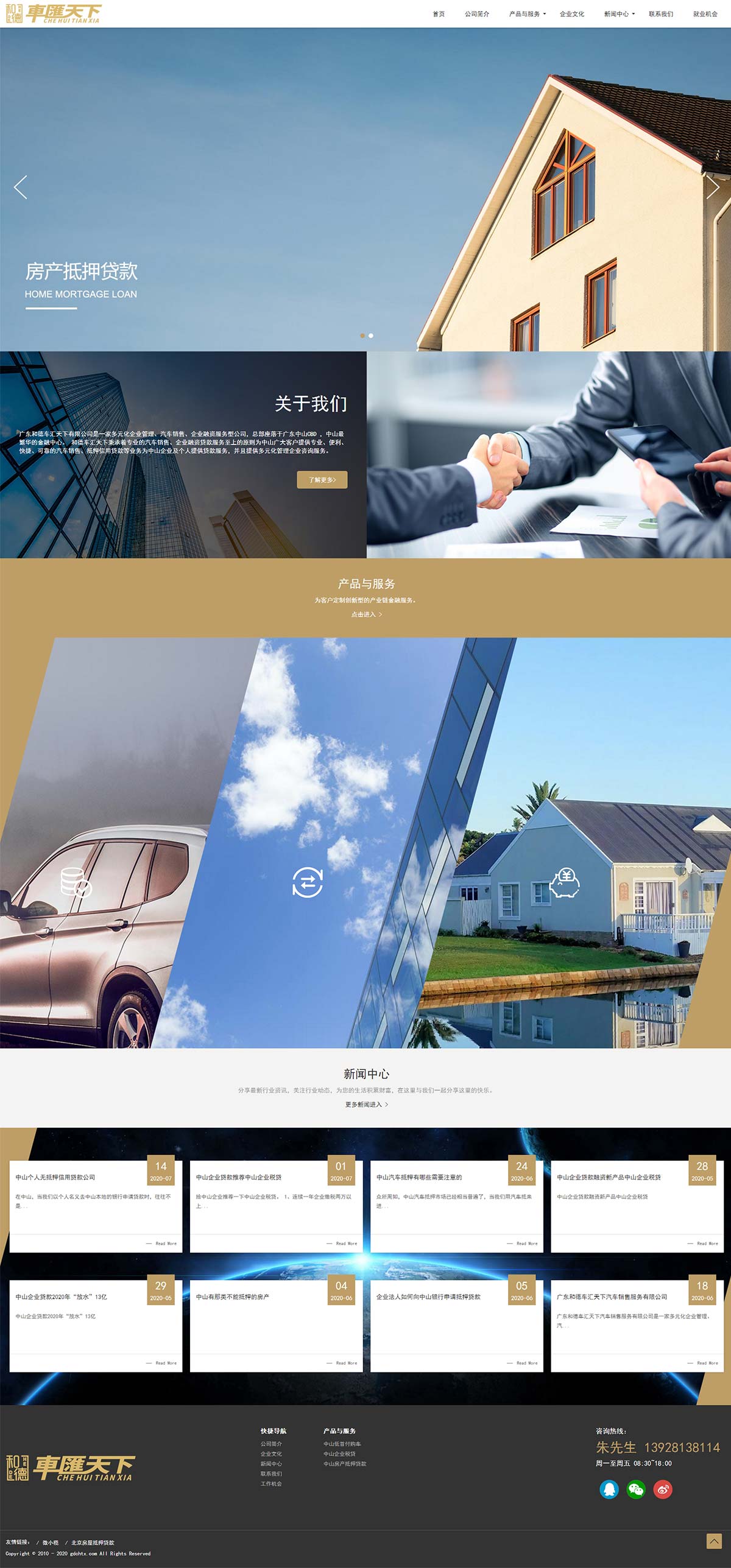 我们在打造“最具竞争力的汽车销售、企业金融服务平台”的同时,采取多元化的经营策略,利用丰富的银行、小额贷款、民间资金等资源和专业的操作知识为客户提供最佳的融资方案。在取得良好的社会效益和经济效益的同时,在业界建立起了良好的口碑和信誉,稳健扎实的成长为最具竞争力的综合金融服务商。