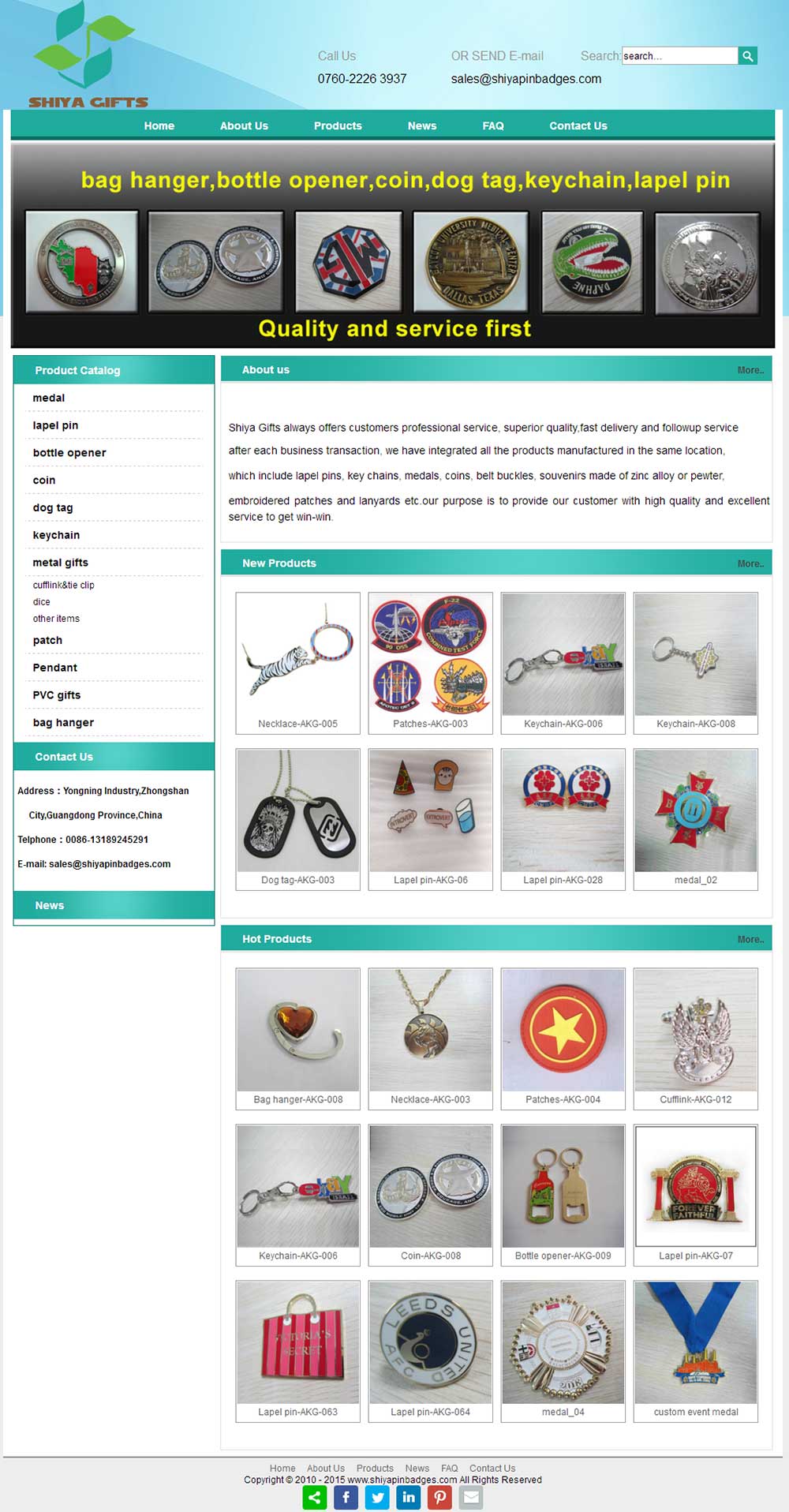 Shiya Gifts always offers customers professional service, superior quality,fast delivery and followup service after eachbusiness transaction, we have integrated all the products manufactured in the same location, which inclde lapel pins, key chains, medals, coins, belt buckles, souvenirs made of zinc alloy or pewter, embroideredpatches and lanyards etc. It’s our responsibility to offer topnotch service.