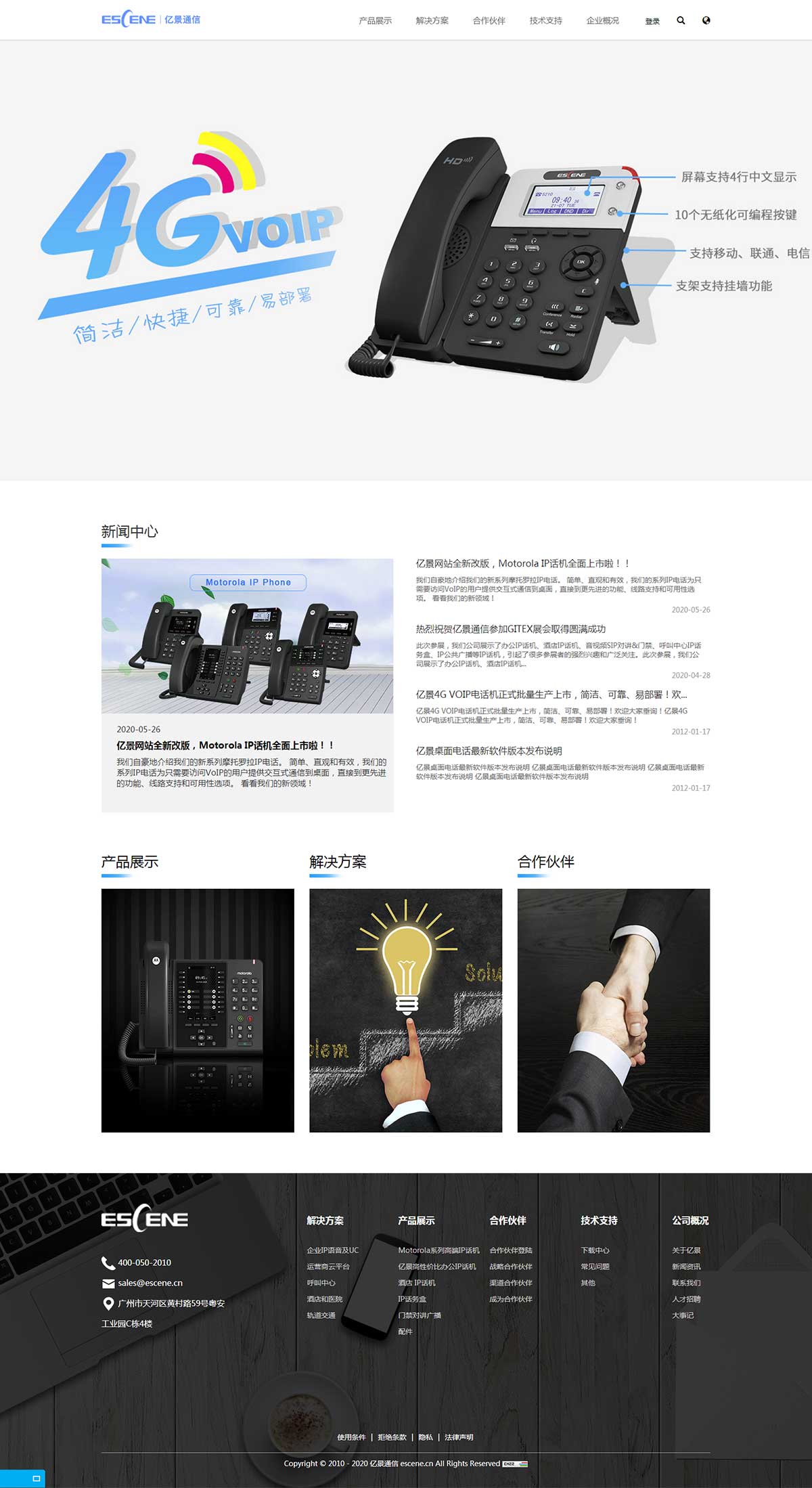 亿景,始创于2001年,已成为中国VOIP话机品牌的领导设计者和厂家。亿景致力于提供设计轻巧,高性价比,使用简单的VOIP话机。我们有强有力的工厂力量及QC/QA安全系统确保高质量产品的生产。从我们强大的充满活力的研发团队(软件&硬件),您可以经常得到有效的友好的支持。