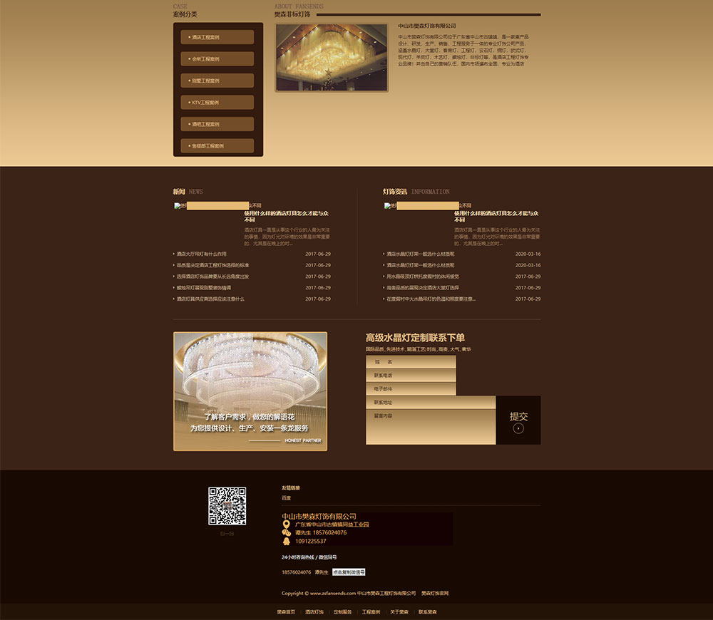 梵森灯饰有限公司位于广东省中山市古镇镇,是一家集产品设计、研发、生产、销售、工程服务于一体的专业灯饰公司产品,涵盖水晶灯,大堂灯,客房灯,工程灯,云石灯,铜灯,欧式灯,现代灯,羊皮灯,木艺灯,蜡烛灯,非标灯等,是酒店工程灯饰专业品牌!并由自己的营销队伍,国内市场遍布全国,专业为酒店方、工程方、经销商提供酒店灯饰整体解决方案!